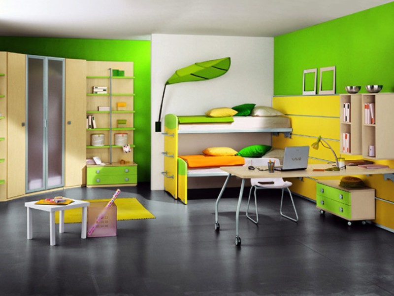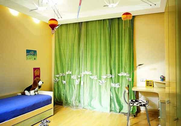 Wykorzystanie zieleni i żółci pomaga stworzyć jasne i kolorowe wnętrze pokoju dziecięcego.
