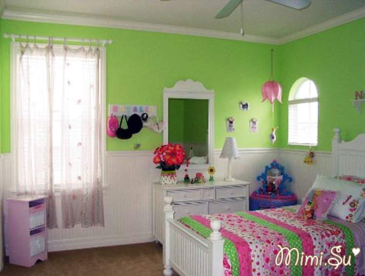 Najlepsze rozwiązanie kolorystyczne dla pokoju dziewczynki: zieleń, róż i biel.